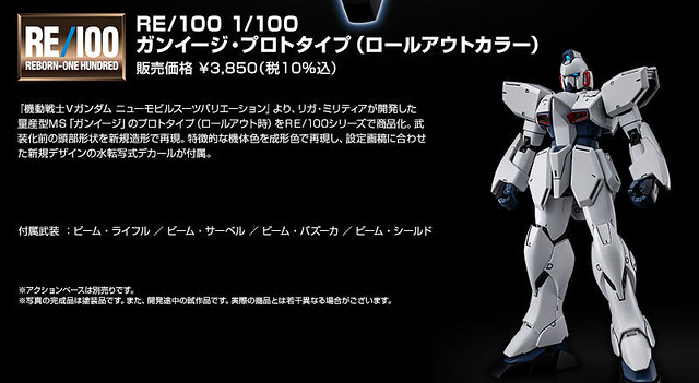 近兩年來不斷有新模型商品的《機動戰士V鋼彈》(機動戦士Vガンダム)又有新的商品發布了!日本萬代旗下的 BANDAI SPIRITS 公司之 HOBBY 事業部所推出的「RE/100」(REBORN-ONE HUNDRED)鋼彈模型系列,繼推出「鋼伊吉」、「鋼布拉斯塔」、「陸戰型鋼伊吉」之後,現在又發表了「鋼伊吉原型」(ガンイージ・プロトタイプ)這款商品,預定在 2020 年 1 月發售。