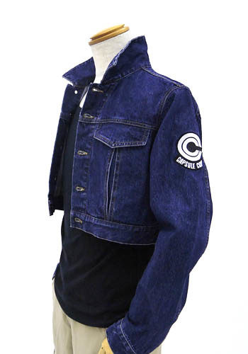 《七龍珠》作者鳥山明,除了被稱為靠著七龍珠熱賣到翻的周邊商品就可以不愁吃穿的男人以外,這部三十多年前的漫畫也因為角色的穿著「走得很前面」讓鳥山明被譽為「引領潮流的男人」。在故事中,來自未來的謎樣少年特南克斯,他登場時身穿的「牛仔短版外套」就在近年成為女性流行服飾的風潮。如今COSPA將其造型實體化,推出特南克斯著用牛仔外套,除了短版牛仔布以外,也有忠實還原在左臂上的膠囊公司(カプセルコーポレーション)的臂章標誌,以刺繡精緻呈現。還原度十分高呢!有成人M、L、XL三種尺寸,不過短版牛仔外套對現在的普遍男性來說可能還是有點難駕馭...,只能說鳥山明老師還是太前面啦!