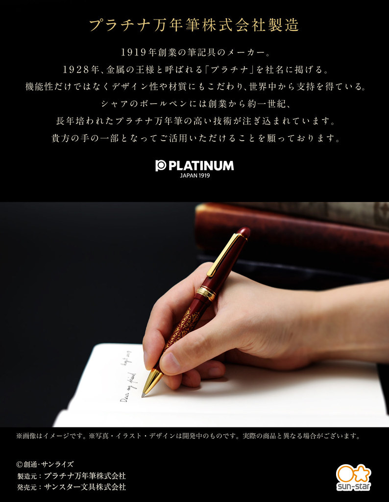 為紀念「機動戰士鋼彈」的動畫40週年,為了榨乾鋼彈迷的錢包,萬代 BANDAI 推出「白金牌PLATINUM《機動戰士 鋼彈》夏亞 原子筆(機動戦士ガンダム シャアのボールペン)」,售價為22,000日元,在PREMIUM BANDAI 線上商店號開始預購,預計2020年02月發售。