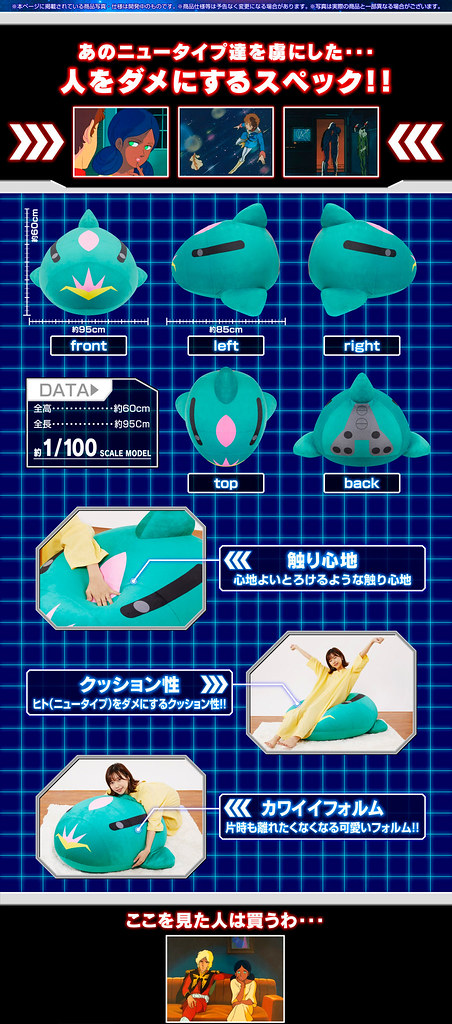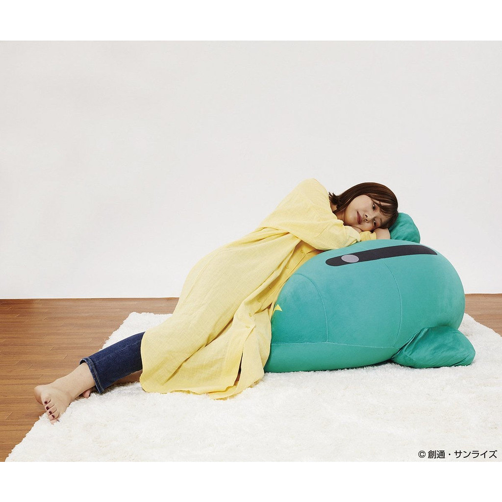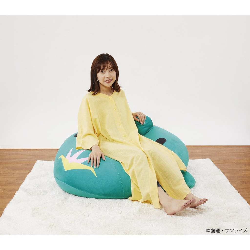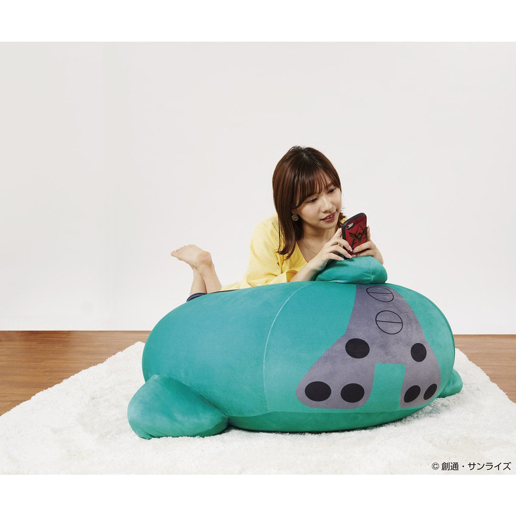 以「中第一位新人類美女駕駛員拉拉.遜(ララァ・スン)駕駛的機動裝甲MA艾爾美斯為設計,總長約為90公分的大型靠枕是以1/100的比例還原呈現~翠綠的機身變得柔軟而圓潤,抱起來可愛又舒適,內含懶骨頭般的顆粒材質,坐在其中彷彿被包裹著,讓人躺下去就不想再起來啦!