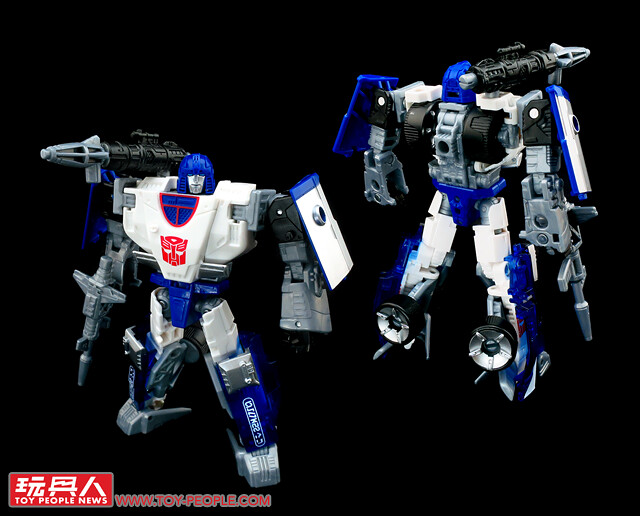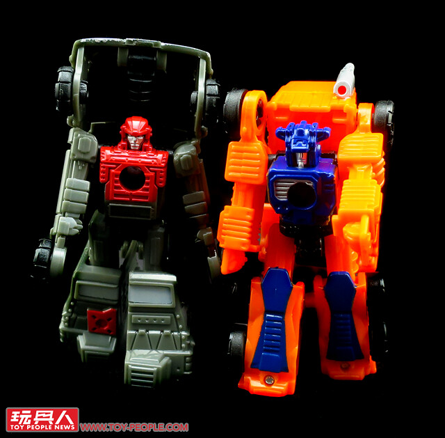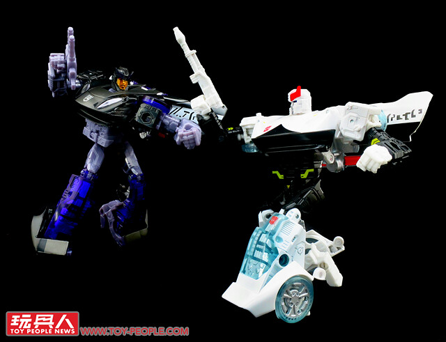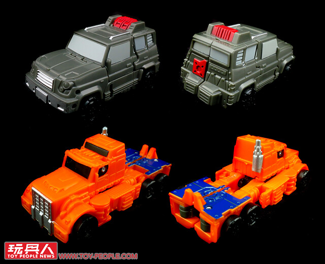 ▼ WFC-S33「高跳」(Highjump)與「動力火車」(Powertrain),來自G1「越野巡邏隊」(Off-Road Patrol)的同名成員,可分別變形為越野卡車及拖車頭,並合體為「干擾加農砲」(Confounder Cannon)為同僚進行火力升級。