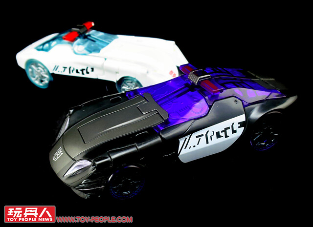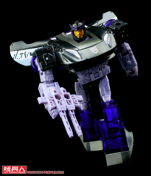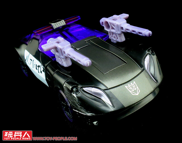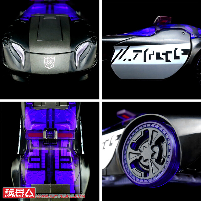 ▼ 載具模式,與巡弋同模但是改成了黑白紫相間的配色,看起來更具邪氣與科技感,位於車頭兩側的舊化塗裝相當的搶眼。