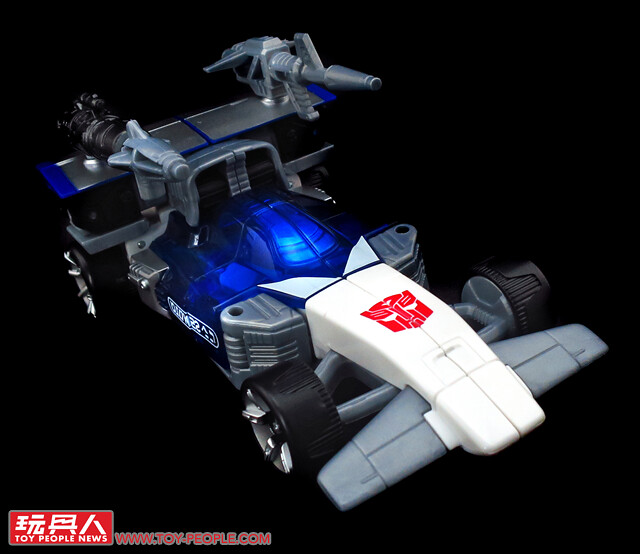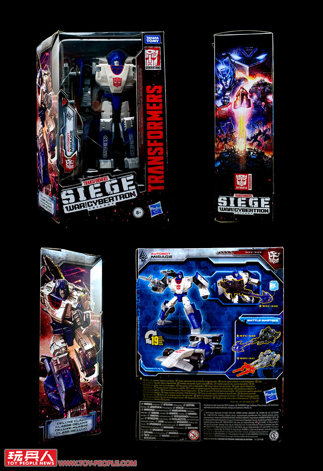 ▼ WFC-S43「幻影」(Mirage),來自G1同名的博派諜報員,在內戰爆發後加入了柯博文(Optimus Prime)所率領的博派,配備電磁干擾的武裝,並具備了隱形的特殊能力,可說是博派最強大的間諜探員。本次的圍城版和撞針相同,一樣是經由粉絲票選而重獲新生,可變形為F1賽車作為擬態,並附屬了C-20「電子破壞加農砲」 (Electro-Disruptor Cannon)、「扭變飛彈」(Distortion Missile),以及W-15「穿甲火箭彈鏢發射器」(Armor-Piercing Rocket-Dart Launcher)。