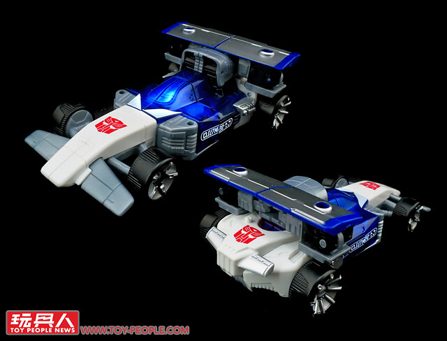 ▼ 載具F1賽車模式,保留了白藍配色等經典元素,在車身的藍色部位更採用了透明零件,虛實交錯的搭配相當漂亮。