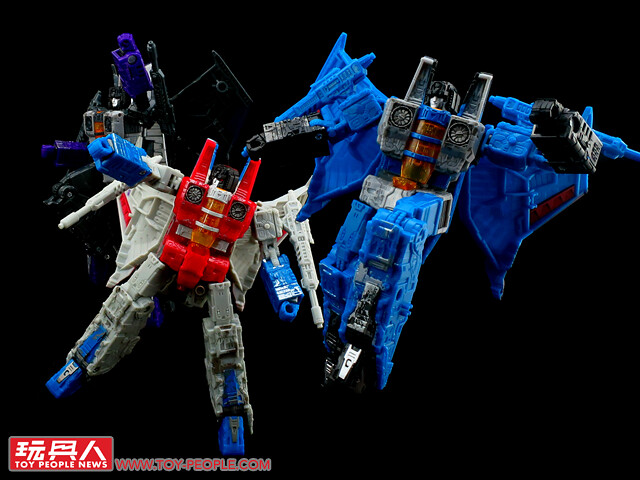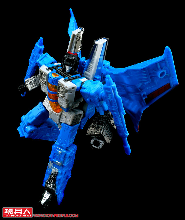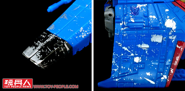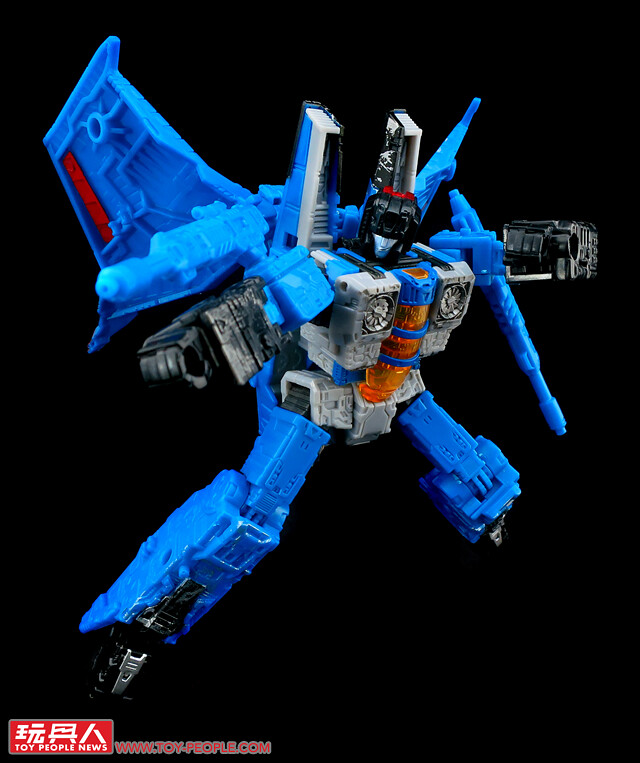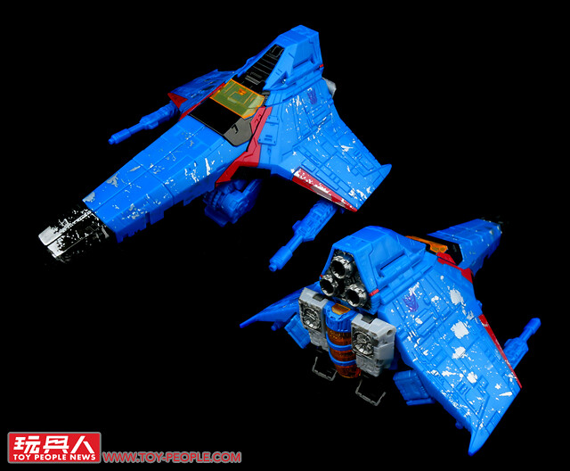 ▼ WFC-S39「裂雷」(Thundercracker),來自G1動畫的狂派(Decepticons)空軍菁英-「巡獵者」(Seekers)的核心成員,對於自身的飛行與空戰能力感到自豪,加入狂派僅僅是為了滿足自我的優越感。本次的圍城版同樣採用了塞博坦的三角錐戰機型態,並配備了HPI「零質雷射線發射器」(Null-Ray Laser Luncher)。