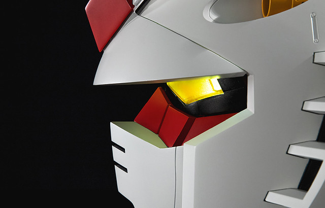 除此之外,這款鋼彈頭部眼鏡收納盒是可以安裝電池的(AA 電池 x 3),當你將正面打開收納回去之後,鋼彈的眼睛會亮,並且會有機器啟動的效果音發出!是不是很酷呢?假如把前述的聯名鏡框都買來,然後都收納進這款鋼彈頭部收納盒裡面,就真的是完美搭配了。
