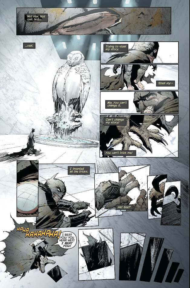 這次的 Batmonster 來自漫畫 New 52 的蝙蝠俠第 5 期裡的內容,高譚市的極神秘組織「貓頭鷹法庭(Court of Owls)」瓦解了蝙蝠俠的心智,使他產生了自己變成了一隻貓頭鷹狀怪物的幻覺。