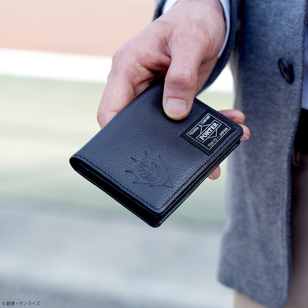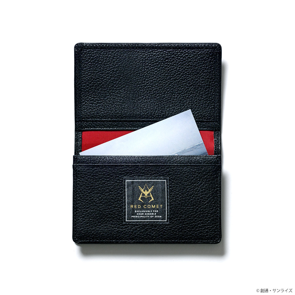 皮革卡包具有時尚的外觀,正面帶有吉翁標誌,背面則是較大的夏亞個人標誌。可容納約60張名片。