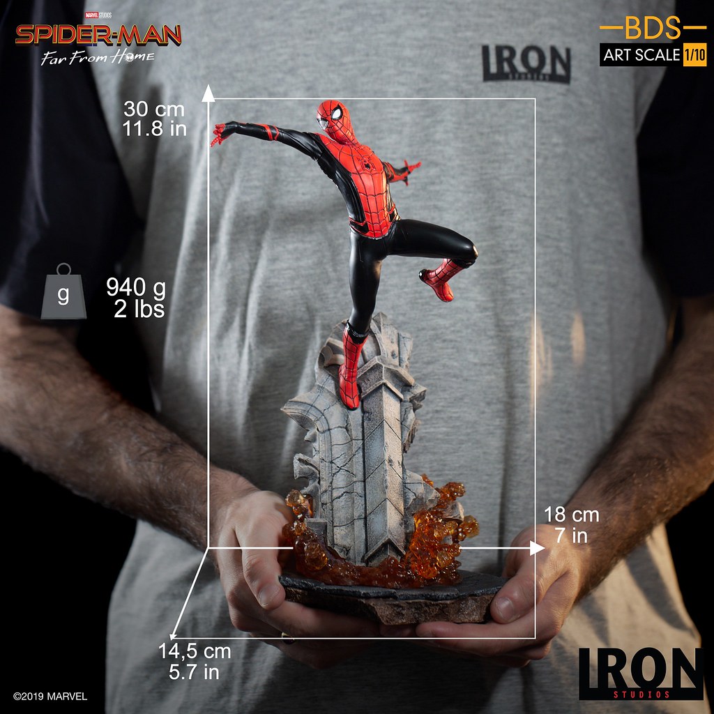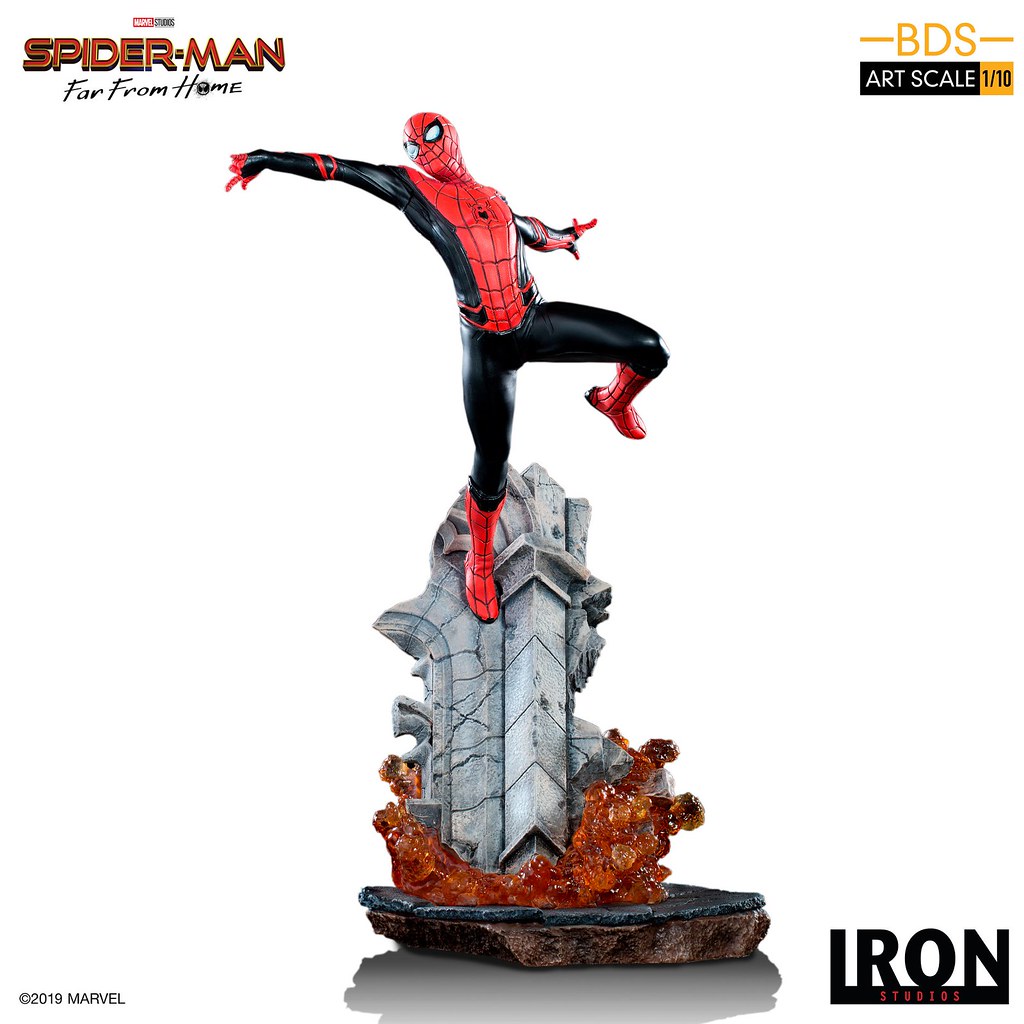 除了可以還原《蜘蛛人:離家日》裡布拉格廣場大戰的在「夜猴」、「熔岩人」與「神秘客」,巴西雕像廠牌 Iron Studios 旗下 1/10 比例的「決鬥場景雕像(Battle Diorama Series,BDS)」系列日前再度發表來自《離家日》的新作「蜘蛛人」(Spider-Man),預計將於 2020 年第二季發貨。