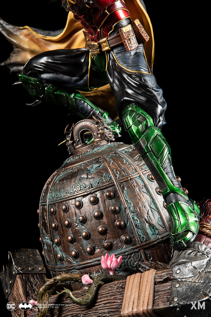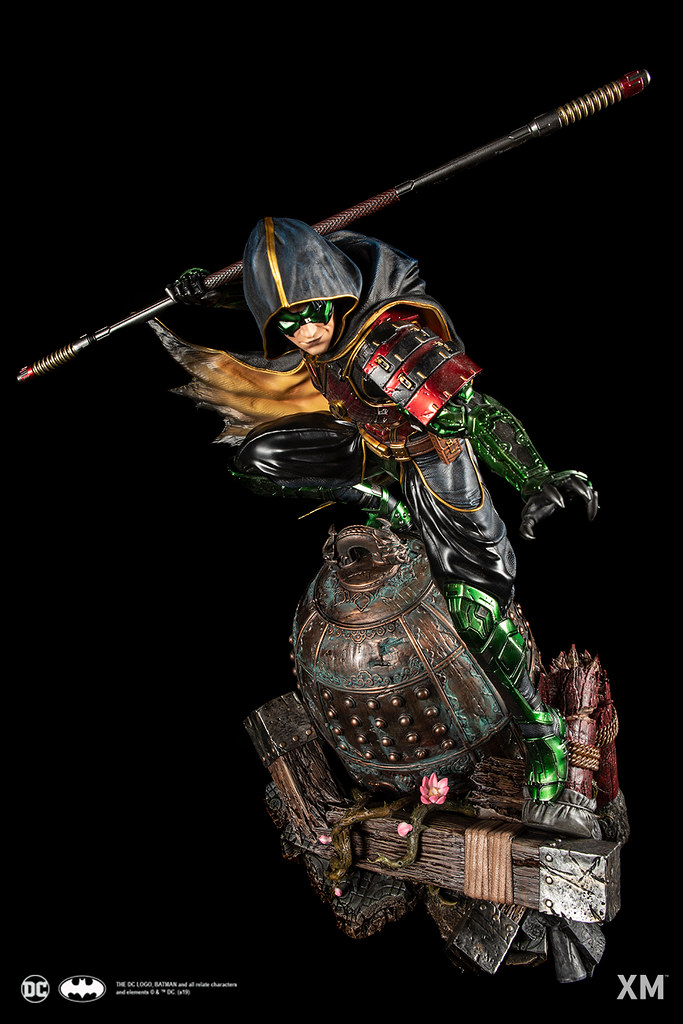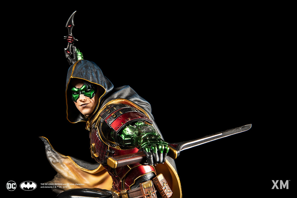 XM Studios 原創的「武士系列」是以漫畫造型為基礎,再注入濃厚的東洋武士風格,用獨特的造型重新詮釋 DC 漫畫裡的人氣角色!本作高約 66.5 公分,將羅賓招牌的紅綠配色緊身衣打造成防禦性能再升級、帶有日式鎧甲風格的複合式戰衣,胸腹、肩膀、手前臂、小腿覆蓋裝甲,並雕出豐富的刻線細節,各處盔甲的戰損、飄動披風下擺的髒污皆十分逼真,就連手套也做成有如鳥類利爪的造型。