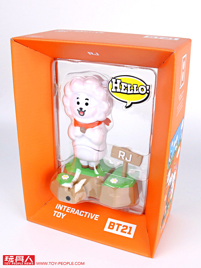 ▼ 首先我們看看外包裝,以 RJ 這款為例,採用橘色厚紙板將包著玩具內容物的泡殼緊緊固定,有趣的是還有跟這款玩具互動功能所對應的英文。