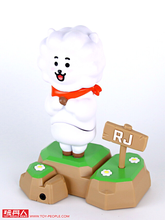 ▼ 那我們就直接來看看這款 RJ 吧!同樣是本系列中「份量十足」的代名詞,藉著底座的感應器,只要一靠近它 RJ 就會發現並對你連鞠三個躬!好笑的是因為 RJ 實在太大隻了,所以他一鞠躬整個底座都會跟著晃動,動感十足呀~這款 RJ 需要三顆 3 號電池,各位玩具人要先準備好喔。