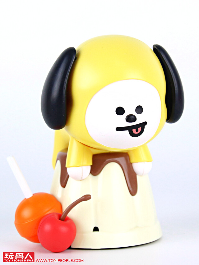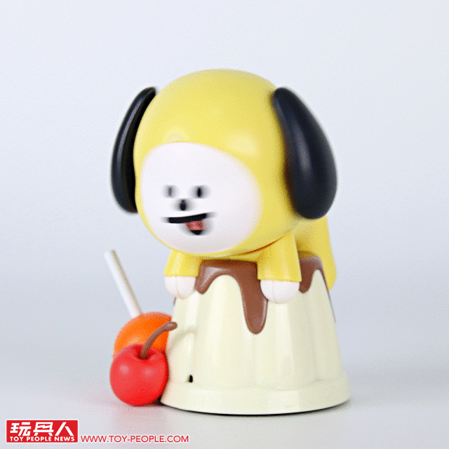 ▼ 接著是 CHIMMY,CHIMMY 展現出慵懶地趴在布丁上的造型,一旁還有棒棒糖點綴,加上吐出舌頭的俏皮表情,整體十分療癒。今天中午的便當到底要選什麼口味呢?照燒雞腿還是烤牛小排,怎麼辦實在決定不了啊~~那就問問 CHIMMY 吧!只要抽掉底座的絕緣片就能開始體驗囉~