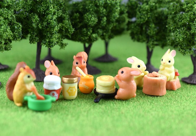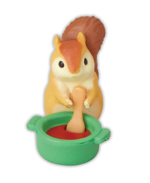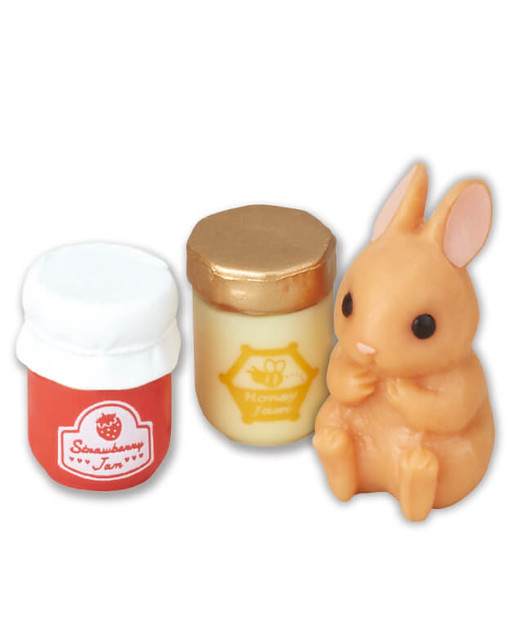 這款由 EPOCH 所推出的轉蛋玩具,塑造出了松鼠與兔子們正在製作點心的情景,有忙著煮果醬和塗抹蜂蜜的松鼠,將果醬裝罐的兔子、以及正在吃,和烤著鬆餅,還有準備樹木椅子的兔子等等,整體集合起來,就像是個快樂的森林動物美食聚會一般,非常地熱鬧也相當可愛,對於喜歡兔子跟松鼠的朋友們,鄉必會非常有購買的慾望。