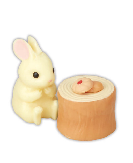 大家印象中的松鼠與兔子,一般來說比較像是溫和的草食動物,松鼠總是會從樹上一溜煙跑到樹下,拿了核果之類的食物之後就迅速衝回樹上大快朵頤,而兔子總是安安靜靜地不停吃著草,但這款可愛的轉蛋玩具,用擬人化的方式,想像牠們也有下午茶聚會的時候,大家一起弄著甜蜜蜜的果醬和餅乾,準備坐下來好好享受。