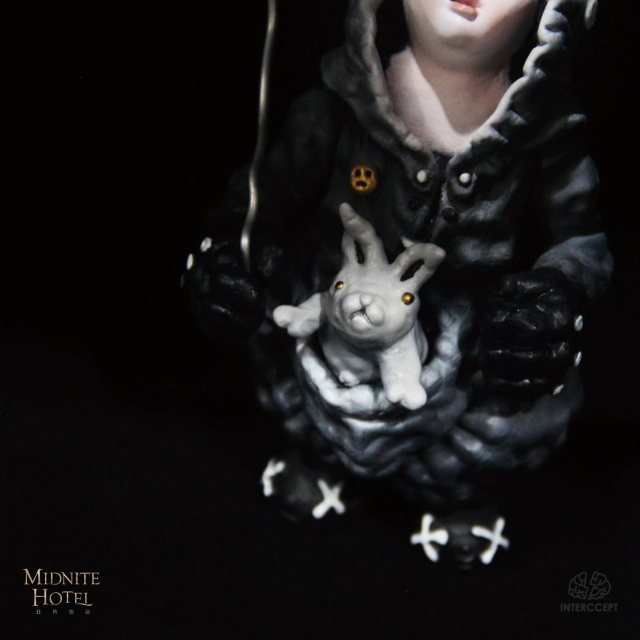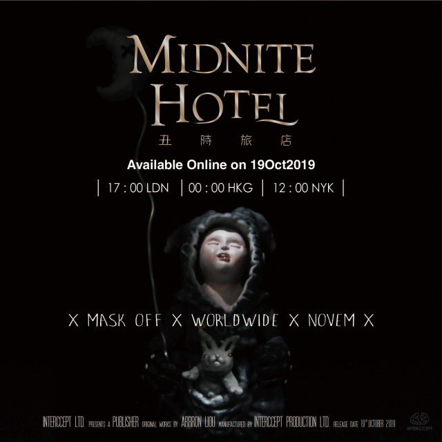 獨立創作單位 - MIDNITE HOTEL 丑時旅店, 由阿鬼(劉宇桓) 這次夥拍香港玩具製作品牌INTERCCEPT 將丑時旅店內故事及角色逐漸逐漸地實體化出來。作品圍繞丑時旅店故事中所出現的章節作開端。而每個章節的內容,創作團隊希望能在ART TOY正式推出後再策劃藝術展覽讓阿鬼以最擅長的舞台設計配合場景創作塑造出來,讓觀眾穿梳於文字, 視覺, 及幻想之中。相信不久將來展覽情報亦會很快公佈。值得注意的是這是阿鬼首只屬於自己的軟膠藝術玩具耶!!