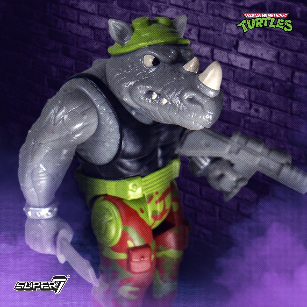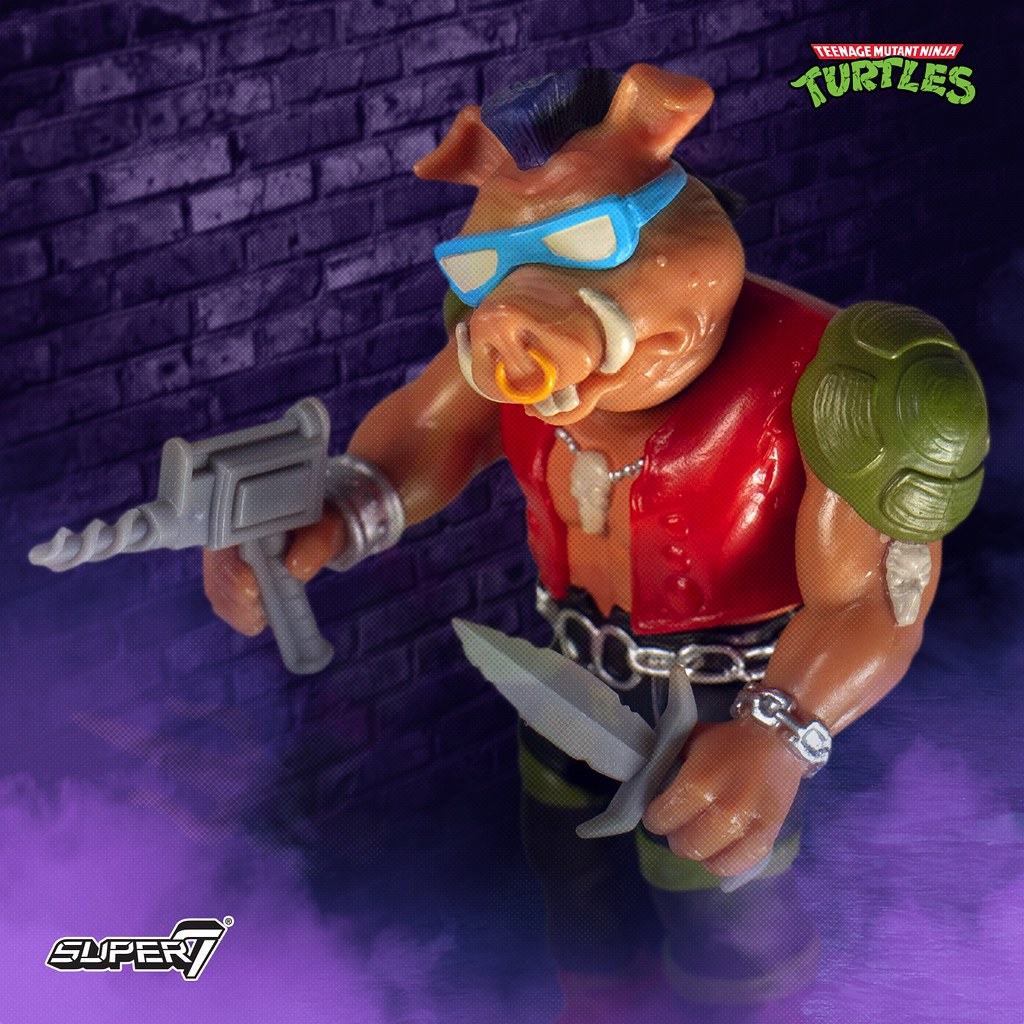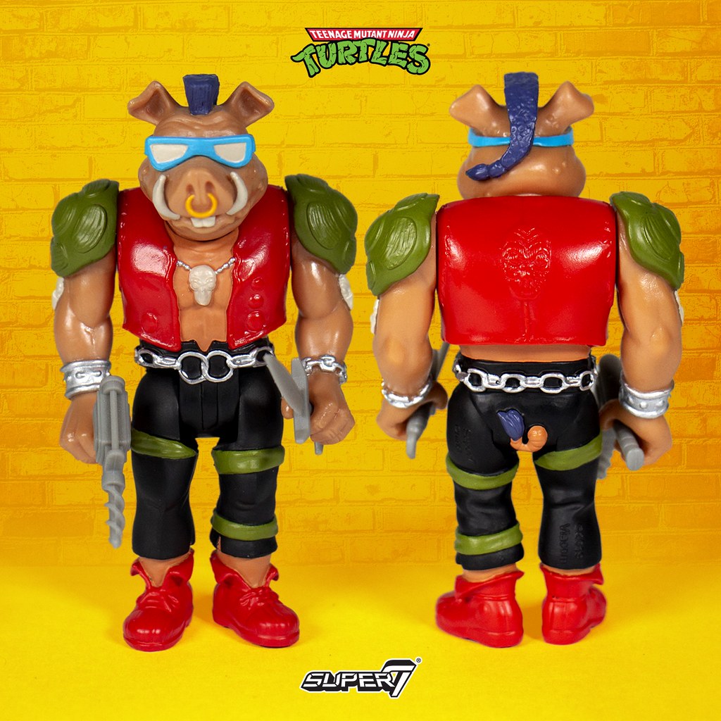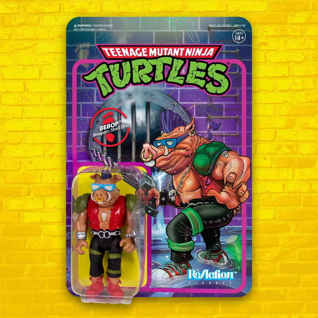 在推出 SDCC 限定的「披薩包裝 3.75 吋可動人偶」之後,Super7 這次再次以大人氣 IP《忍者龜》為題製作復古風滿載的吊卡玩具,第一波總共發行神龜四兄弟中的「李奧納多」、「拉斐爾」,以及經典反派角色雙人組變種疣豬「比巴」與變種犀牛「洛克史迪」,每款玩具都附屬了該角色的招牌武器配件,而背卡的視覺也有不輸給人偶本體的精彩表現,鮮豔的色彩、粗獷的美式圖樣讓人完全捨不得拆,根本就是逼人每個角色都買兩隻!
