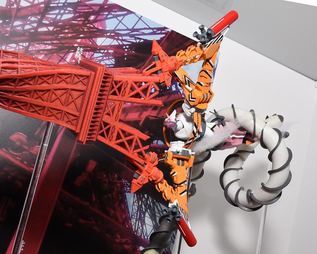 ▼ 會場內更再現了《新·福音戰士劇場版:│▌》片頭登場,8號機 β 臨時戰鬥型態以鐵塔尖端對決 EVA 4444C、EVA 44B 的巴黎戰鬥場景!