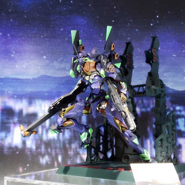 而『METAL BUILD』部份展出了全新「夜間戰鬥配色」的初號機與 2 號機,除螢光色外整體塗裝彩度大幅下降,呈現彷彿夜色中的姿態。此外還展出了類似雙頭刃的新武裝。