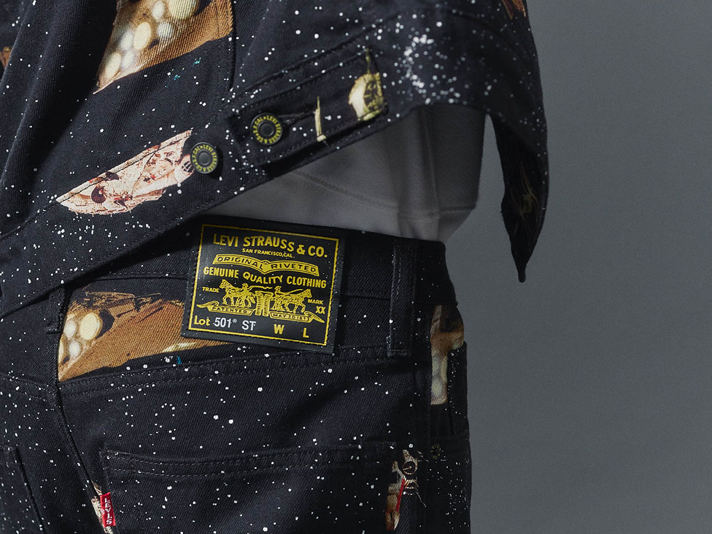 40多年後的今天,這些共同的歷史在《星際大戰 X Levi's》的聯名系列中集結,在 Levi’s 的服飾細節中融合了星戰的元素,在牛仔布的邊緣與僅在袖口繡上「May the force be with you」的字樣,或將整個太空戰鬥打印在服飾上,以亮眼醒目的樣貌呈現。幾款復古風格的牛仔夾克,背面有R2-D2、黑武士的設計,亦有電影開頭的經典感動名言:「在遙遠的銀河系中...」(In the galaxy far far away)還有簡約風格的T恤,印製該系列中最令人難忘的莉亞公主和達斯·維達等角色。