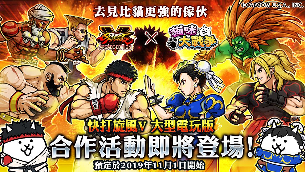 《快打旋風V 大型電玩版》x手遊《貓咪大戰爭》