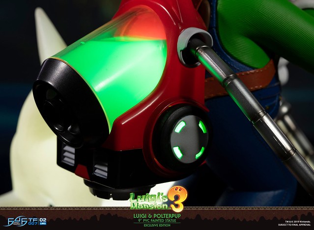 這款由 First 4 Figures 所推出的路易吉 9 吋 PVC 人偶,有普通版和高級版(EXCLUSIVE EDITION)兩種,前者就是單純的路易吉立體人形,後者追加的東西就不少了,除了有路易吉之外,還有那隻可愛的幽靈狗狗「PULTERPUP」跟路易吉一起排排站,而且商品本身有好幾處是有 LED 燈崁入的,包括路易吉手上的吸塵器,以及幽靈狗本身都會發亮喔!