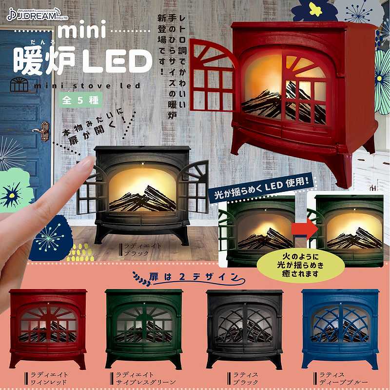 推出許多轉蛋玩具的日本玩具廠商「J.DREAM」(J‧ドリーム),將推出一款適合秋冬使用的轉蛋商品「迷你暖爐LED燈」(ミニ暖炉LED)轉蛋。此款迷你小暖爐內置LED燈,點燃(打開)後還會有如火光般的搖曳光影!全套共五款,參考售價為日幣300円一轉,預計 2019年 11月發售。