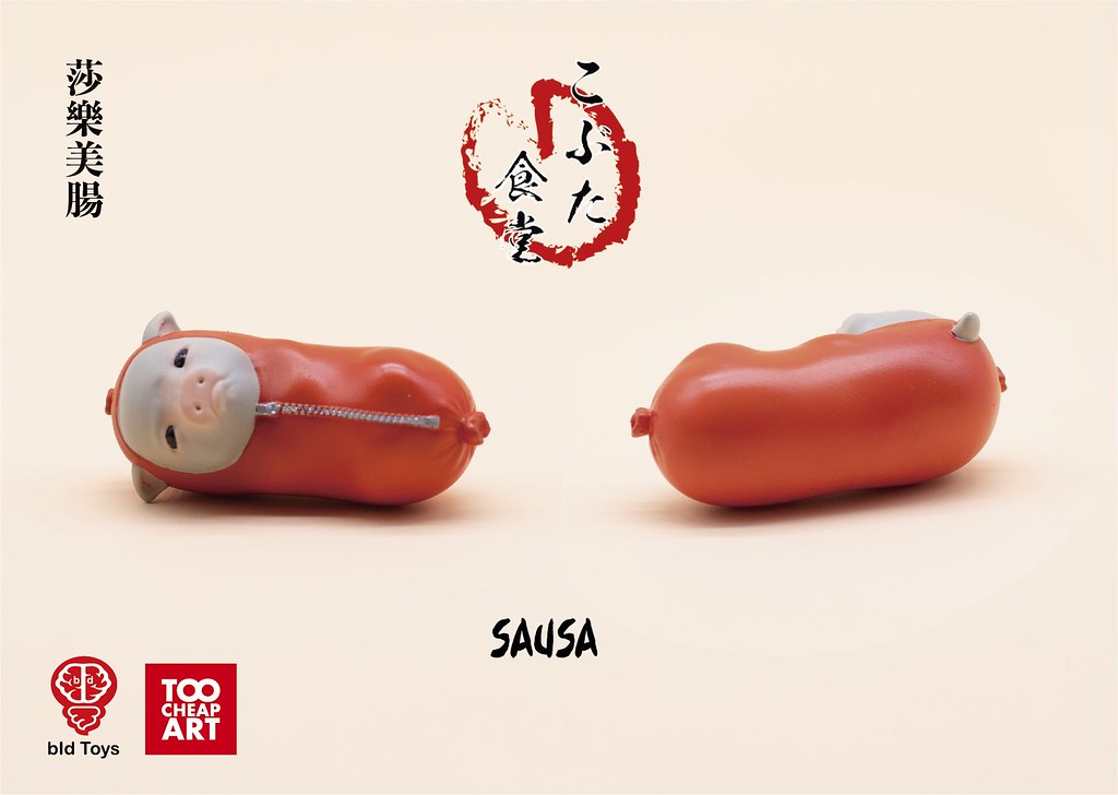 而這次的「一口粗豬食堂」是將商品尺寸縮小並採用盲盒形式推出,共有 5 + 1 隱藏,每款約 6、7 公分,採用 PVC 材質製作,讓你吃收藏起來更加輕鬆無負擔XD~造型方面延續了粗豬食堂的創意並在部分款式的動作呈現上做出不同設計,重點是還增加了新料理,把肉腸當作睡衣的「莎樂美腸」與尚未公開正面模樣的隱藏黑豬菜單喔!而且 Too Cheap Art 也預告了之後還會有新商品,實在令人期待呀~