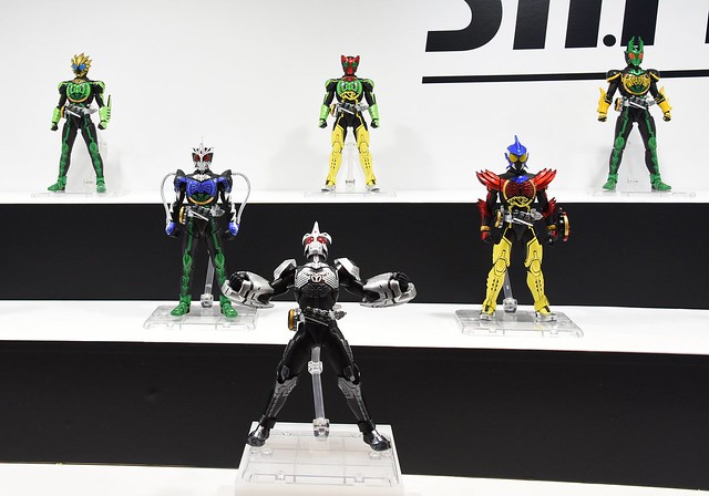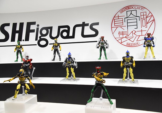 而『S.H.Figuarts(真骨雕製法)』則是超級大坑「假面騎士OOO」的主場,透過型態變化機構能重現劇中大量亞種型態。除了已商品化的鷹虎蝗、鍬螳蝗聯組外,會場中也一口氣展出獅虎豹、犀猩象、鯨鰻章、鷹孔鷲等聯組,以及相關的亞種型態。另外也展出了「假面騎士電王(聖劍形態)」、「假面騎士空我」四型態、「DARK KIVA」等。
