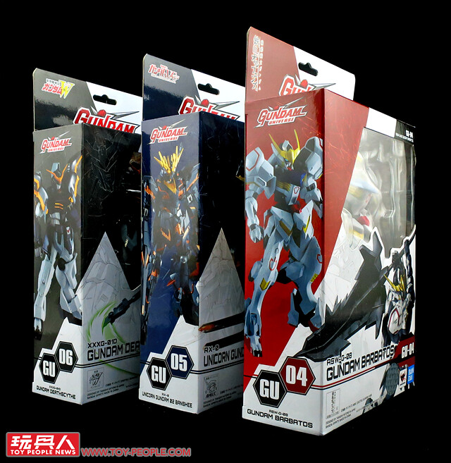 ▼ 『GUNDAM UNIVERSE』採用歐美玩具常見的吊卡、開窗式設計,能大致看清楚盒內商品的現狀,並在下半部印上帥氣的機體插畫。獵魔鋼彈的盒裝設計使用了代表鐵華團 LOGO 的紅色。