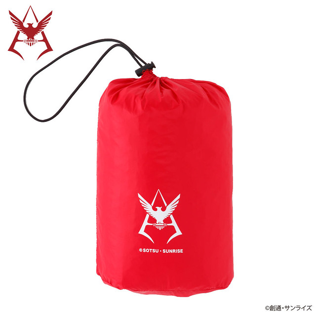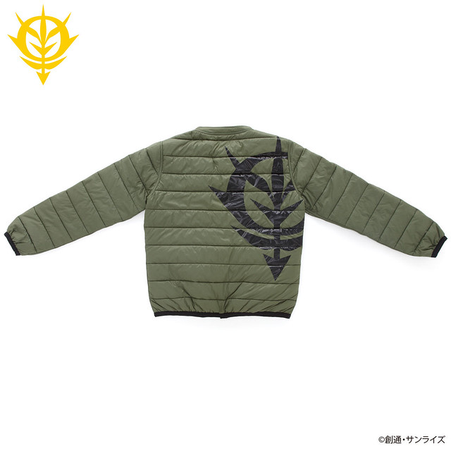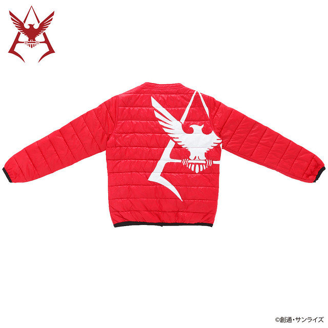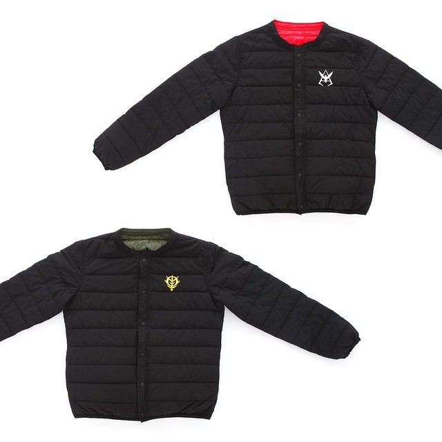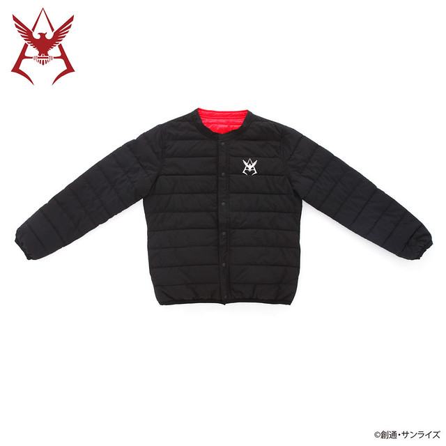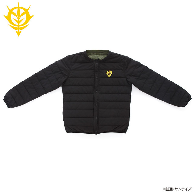 兩款外套都是可以正反兩面穿的,平常正面是樸素的黑色,左胸口處有代表的圖案,夏亞款的內裡就是漂亮的鮮紅色,並且有代表夏亞的圖案,讓人一看便知這是紅色彗星。而吉翁款的內裡就是象徵吉翁風格機體的草綠色,同樣也有著吉翁的軍徽圖案。兩款外套都附有簡單的收納袋,呼應外套顏色,真的是非常漂亮的一款羽絨外套。