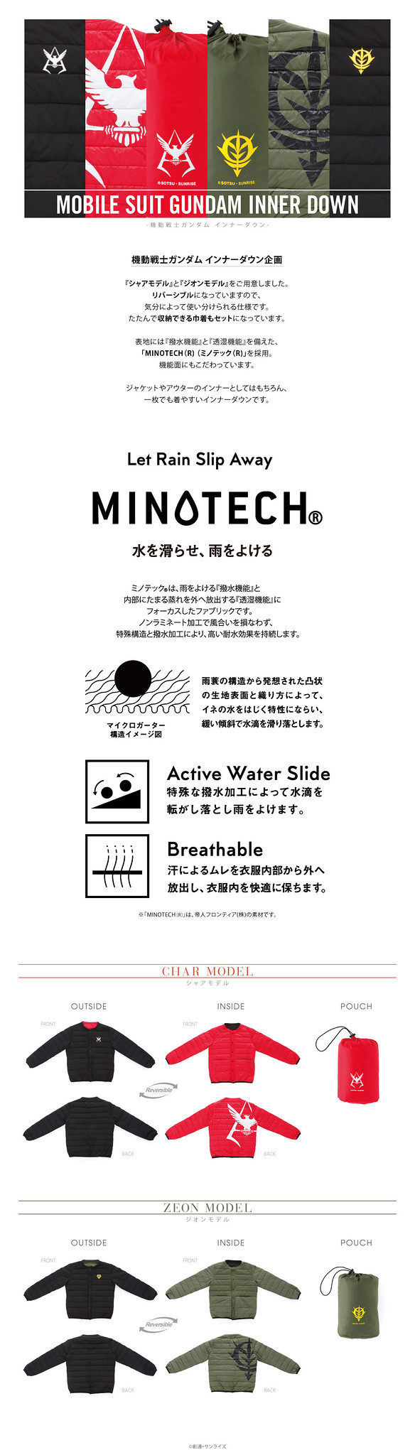 才介紹過鋼彈主題的 MA-1 飛行外套不久,萬代 BANDAI 又很邪惡地又推出其他的外套產品了,這回將腦筋動到目前時下大家常用來穿搭或是簡單披著的內搭式羽絨外套(INNER DOWN),並且推出了夏亞款和吉翁款這兩種很酷的款式。預計將會在 2020 年的 1 月開始發售,目前可在 PREMIUM BANDAI 上預訂。