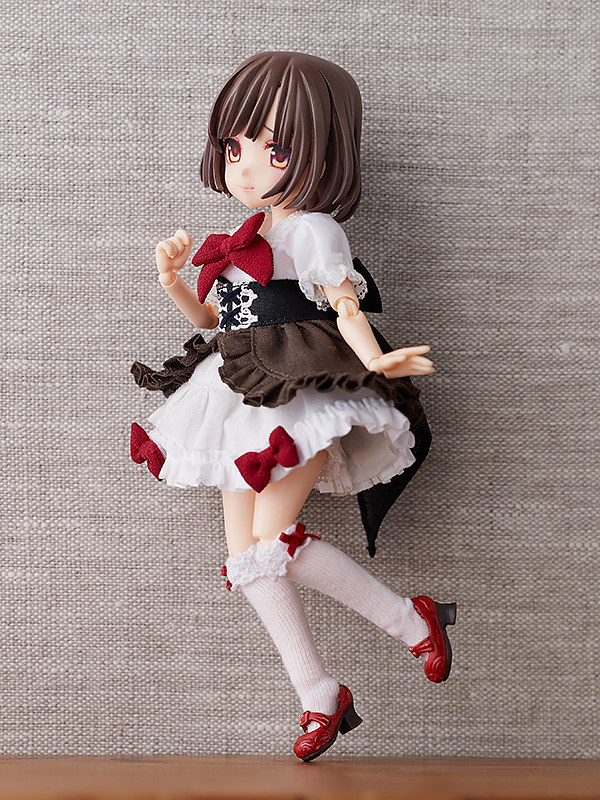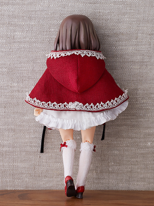 第一彈「小紅帽」附上了眼影相當美麗的「普通臉」、「側看臉」、「吐舌臉」、「開心笑臉」四種表情零件以及替換用造型手掌,全身服裝包含斗篷、連身裙、束身裙、襯褲、襪子、鞋子都能自由穿脫搭配,賞玩各種不同造型!配件中也附上麵包、紅酒、開闔式籃子等配件,還原多數人印象中的小紅帽形象!