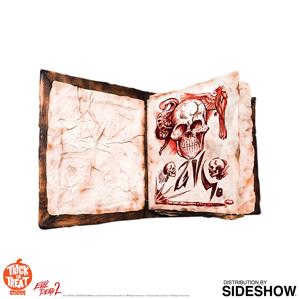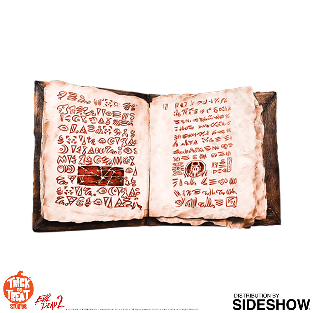 「死亡之書 1:1 比例道具複製品」尺寸為高 25.4 × 寬 17.7 × 深 8.8 公分,雕刻師 Russ Lukich 完整、逼真地刻畫出那以人皮製作、人血書寫的不祥之書,佈滿皺褶、能夠清晰地看見人臉輪廓的封面超恐怖,翻開之後還可以看見因年代久遠而造成的髒污痕跡,破爛、皺巴巴的書頁上也考究地製作出獵奇的圖樣與古文字,總共有 36 頁,對於喜歡鬼玩人系列的玩具人來說,這本死亡之書太值得收藏了!