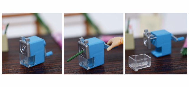 上方可拉開、鉛筆可放進去、手桿可轉、集屑抽屜可拉!(繼續尖叫)