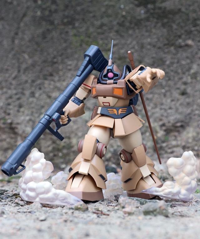 本體高約 135 mm。造型上重現了設定中的圓滑裝甲造型,小腿的推進器也具備豐富的可動關節與裝甲連動。配件包括造型手掌 x 8、造型手掌格納配件、火箭炮、電熱劍(收納用)及劍刃(發光用)、土煙特效配件大小各 x 2 、後備天線及噴射推進特效等。配件也夠玩過飽。