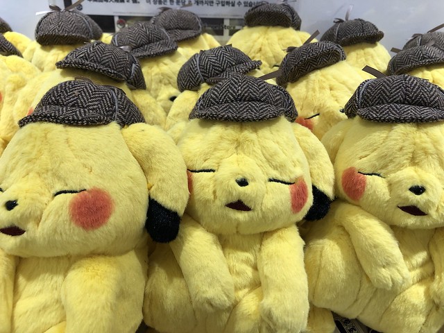 原本是《名偵探皮卡丘》藍光 DVD 預購特典商品的「皺臉皮卡丘」(しわしわ顔ピカチュウ),因為話題性十足加上許多粉絲自製的無授權周邊不斷推出,官方乾脆直接推出絨毛布偶,並在日本寶可夢商店上架。還原電影中爆紅的衰臉表情,以高19公分,長16.5公分,寬11公分的尺寸呈現,戴著劇中的咖啡色格紋偵探,搭配帽皺成一團的表情,衰中帶著可愛,越看越療癒!官方表示:看到他,記得給他一個抱抱!