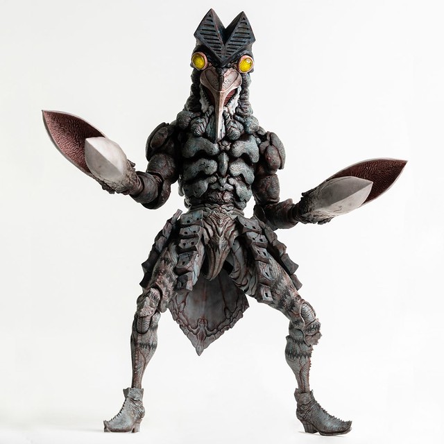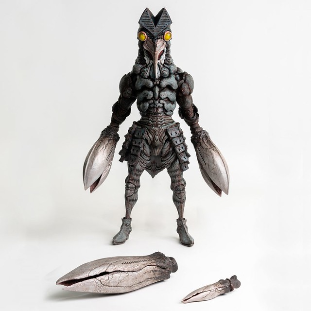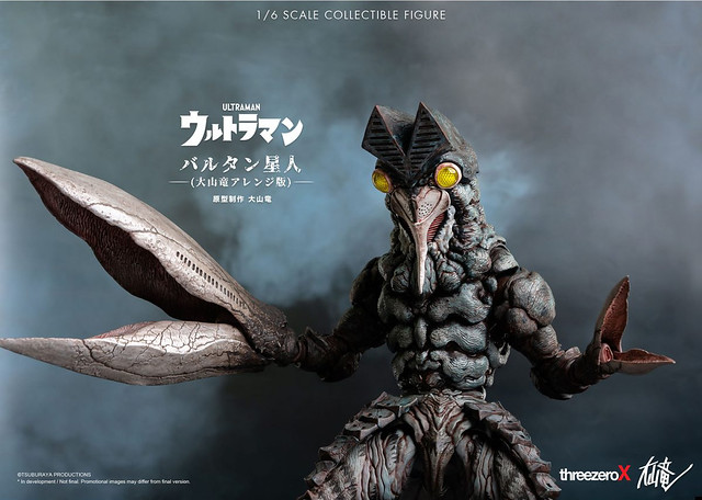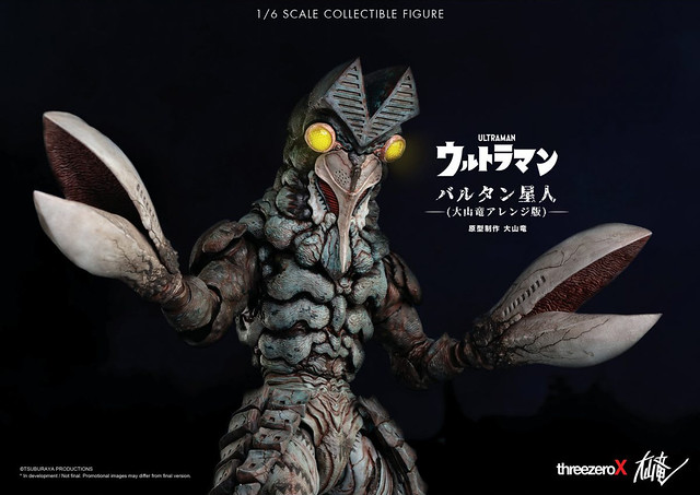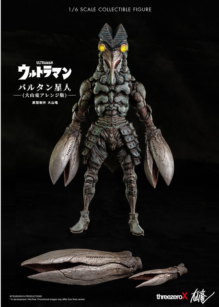 「threezeroX 巴爾坦星人 1/6比例可動模型」由知名怪獸原型師大山竜擔任製作,保持巴爾坦星人基礎形象,並在外觀細節刻劃更多生物、鎧甲般的造型,並且在四肢設計了巧妙隱藏關節零件的可動機構,維持造型完整性,還能替換不同尺寸的螯進行把玩!