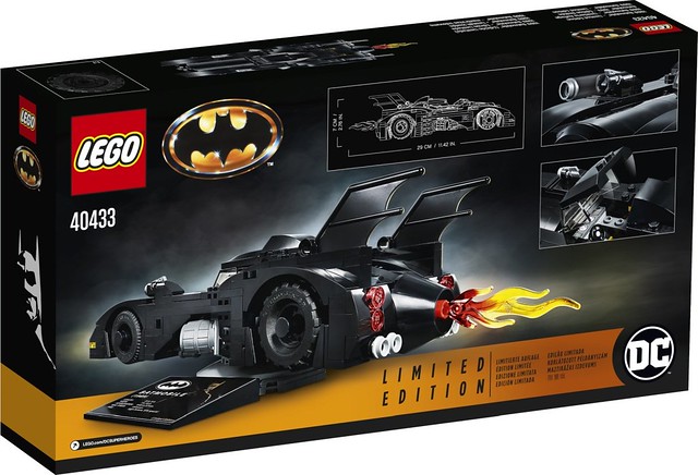 這次的「LEGO 40433 蝙蝠車」共有 366 片零件,組裝完成的長度來到 29 公分(含火焰特效),高則有 7 公分,精準地勾勒出帥氣的 1989 年版蝙蝠車外觀,除了招牌的蝠翼造型尾翼外,還搭載了兩個子彈發射器,駕駛艙可以往上掀開,看起來似乎能容納一個樂高人偶在其中,而且屁股還能裝上煞氣的大型火焰零件,整體更拉風!蝙蝠車也能與盒組附屬的底座一起展示。
