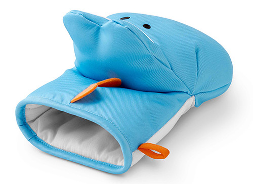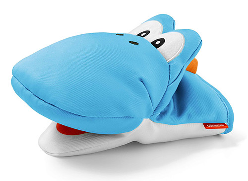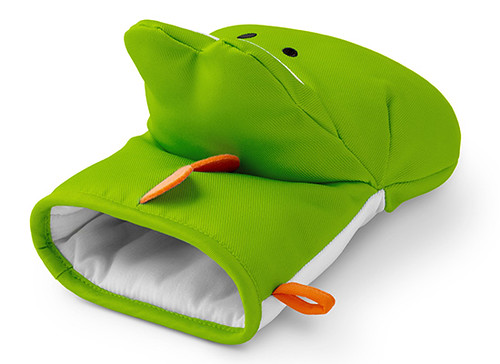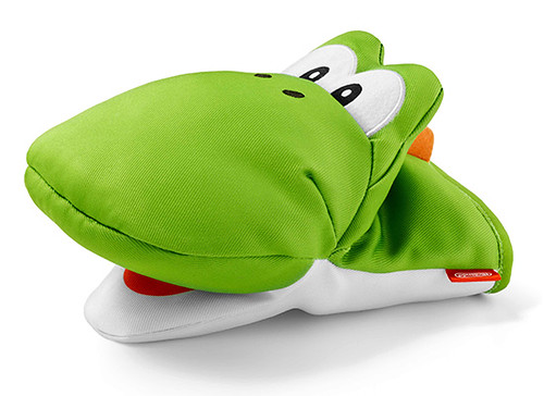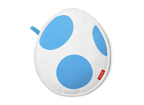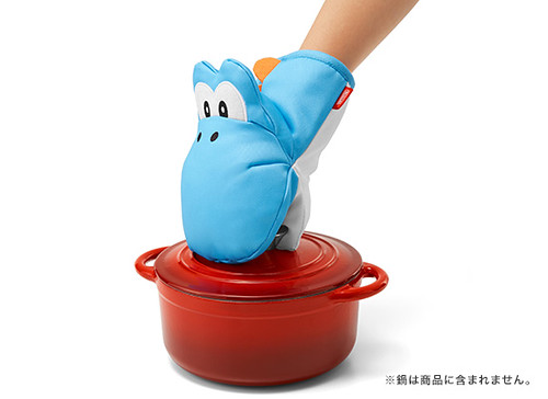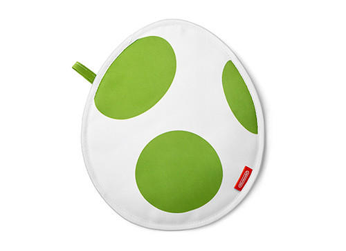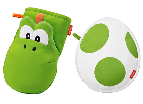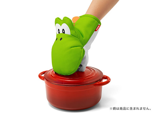 耀西造型的隔熱手套.使用時就像是可以把任何敵人吞入口中的耀西,咬著熱熱的碗或是烤盤!附有耀西蛋圖樣的隔熱墊,有綠色與藍色兩款。