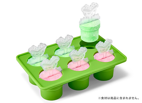 以水管為造型,可以製冰或是製作果凍等,並附有食人花圖案的小棍棒,插入後即可呈現食人花從水管中冒出來的模樣。
