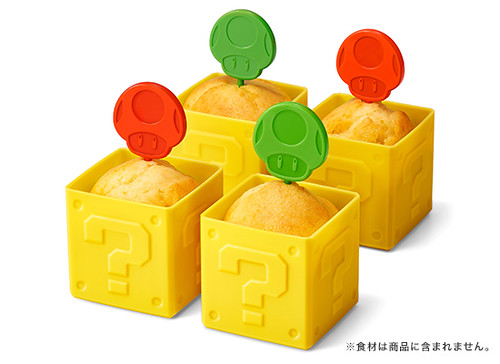●問號磚矽膠鬆餅杯 & 蘑菇鬆餅小叉子(マフィンカップ ハテナブロック&ピック スーパーキノコ/1UPキノコ)
