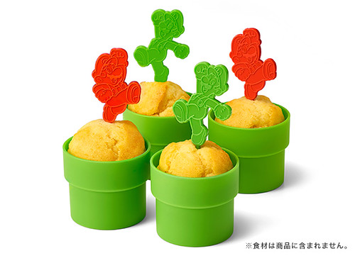 ●水管矽膠鬆餅杯 & 瑪利歐兄弟小叉子(マフィンカップ 土管 &ピック マリオ/ルイージ)