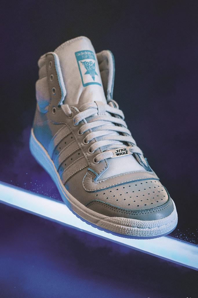 第一波 adidas Basketball 以武器光劍 Lightsaber 為主題,並將不同的球員鞋款融合星戰角色的特色,推出聯名鞋款:Harden Vol.4、Dame 5、D Rose 10、D.O.N. Issue #1、Crazy 1等多種鞋款。為營造星戰的宇宙風格,將雲度大師所使用紫色光劍、路克・天行者的綠色光劍,及藍色光劍巧妙融入其中,甚至部分鞋款使用 UV螢光材質製作,讓鞋子擁有夜光效果,如光劍般閃耀!處處充滿細節的設計,是不負球迷粉絲期待的重磅聯名合作。