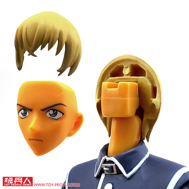 ▼ 拆下前髮零件即可替換表情,除了一開始裝在本體的嚴肅臉外,另外還附上帥氣的「微笑臉」、充滿自信、讓人難以捉摸的「笑臉」、配合危急場面使用的「咬牙臉」、溫柔的「瞇眼笑臉」可替換。