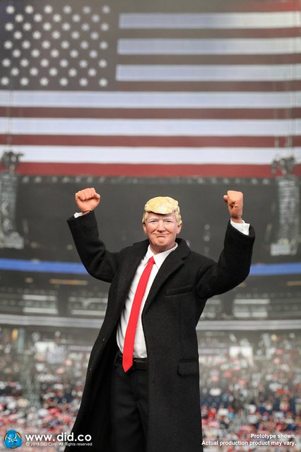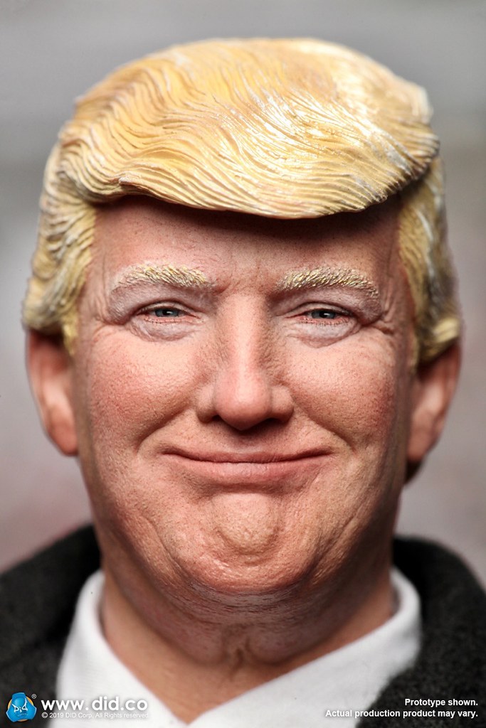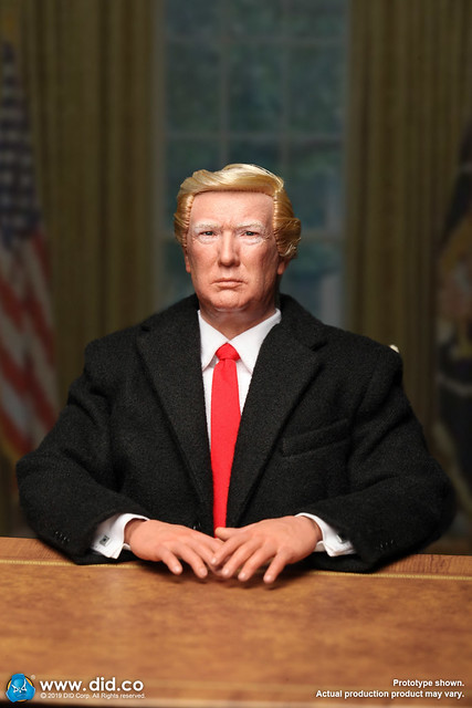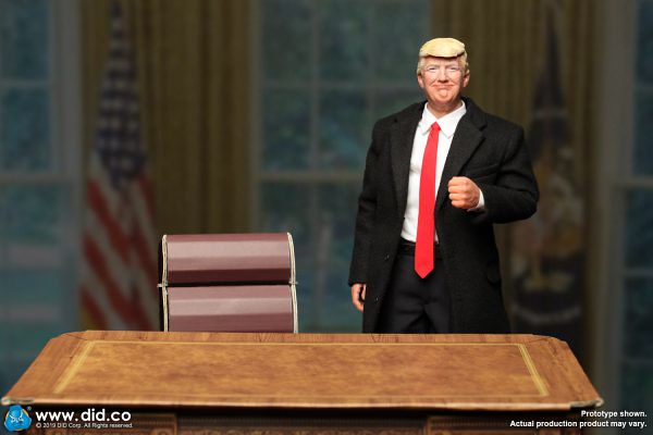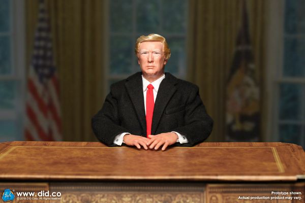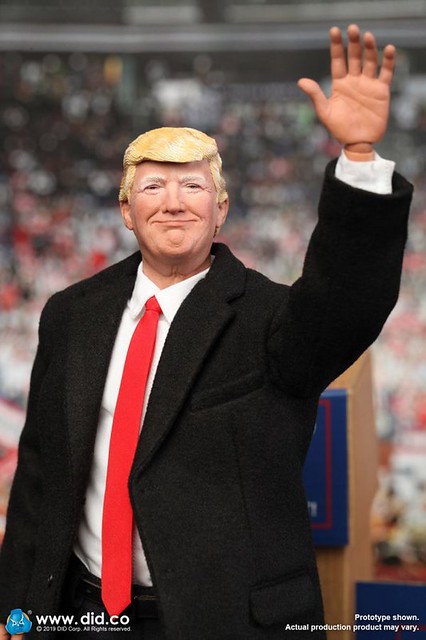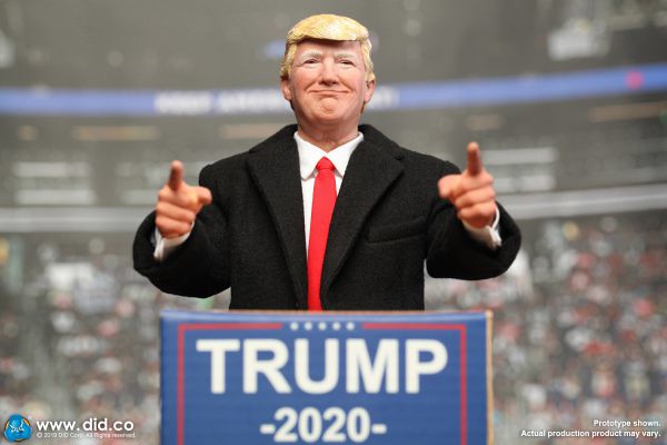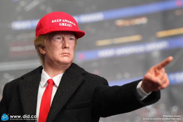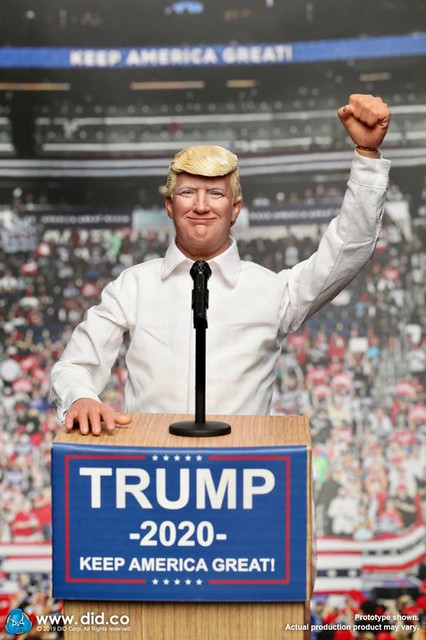 香港知名的玩具軍警人偶製造廠商「Did」,擅長推出各式各樣的軍用裝備造型可動人偶,這回他們難得不是推出軍武風格的人偶商品,而是將腦筋動到真實生活的政治人物上了。Did 將要推出現任美國總統「唐納‧川普」(DONALD TRUMP)的立體化可動人形商品,預計將會在 2019 年的第四季發售。價格為美金 139.99 元。