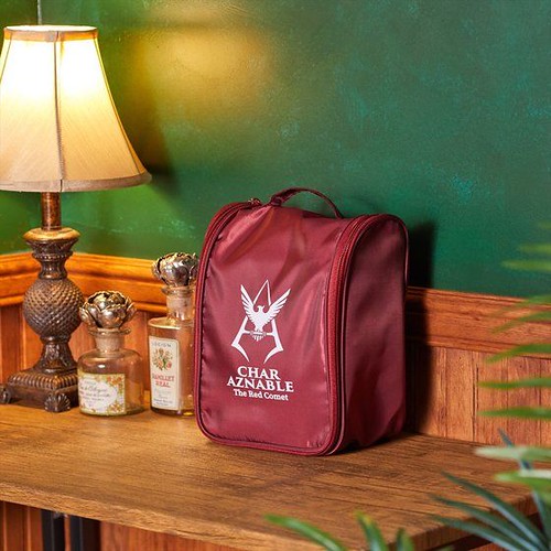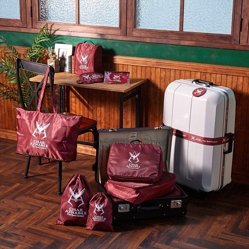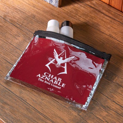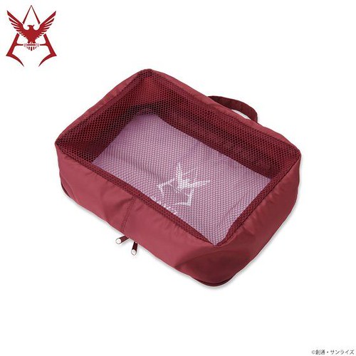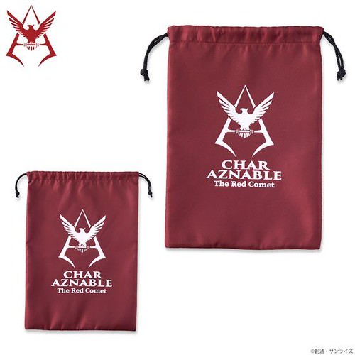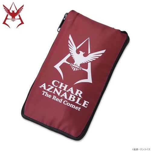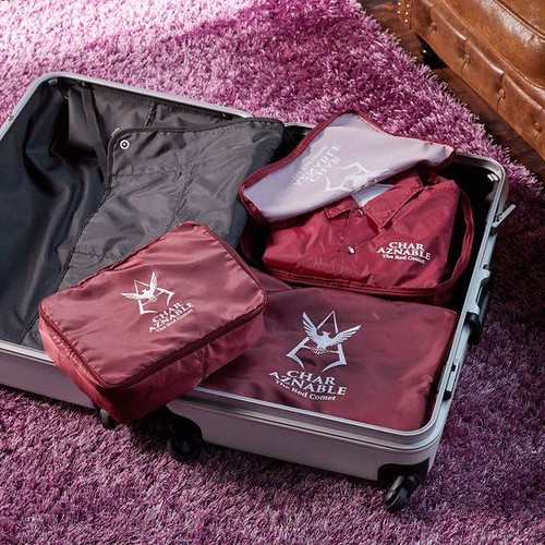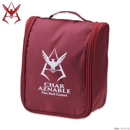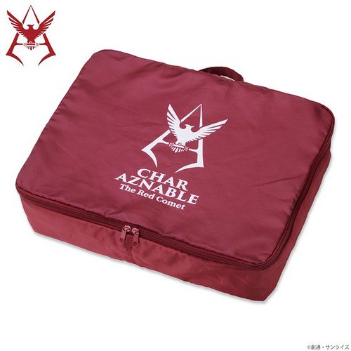 本系列商品都印著夏亞專用的符號與「CHAR AZNABLE The Red Comet」的字樣,推出了一共八樣的旅行用品,分別為:手提袋(コンパクトトートバッグ)、可掛式收納包(ハンガー付きポーチ)、束口袋組(巾着セット)、衣物收納組(衣装ポーチセット)、防水透明袋(クリアケース)、眼罩(アイマスク)和行李吊牌(ラゲージタグ)與行李箱束帶(スーツケースベルト),分開販售,可以根據自己的需求挑選適合的物品,簡單的設計讓外出旅行也能輕易充滿夏亞味。