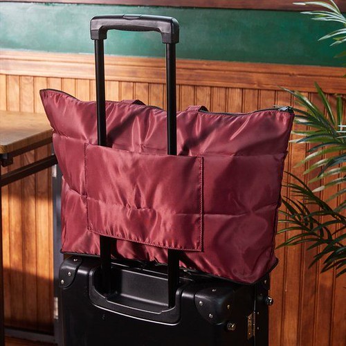 可以收納摺疊的手提袋,不僅攜帶方便,背面還有可以與行李箱配合使用的設計,在行李太多的時候是很好的輔助包,也適合日常使用。