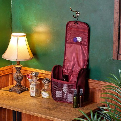 附有衣架掛鈎的收納包,可以直接展開的設計可以很容易找到想要使用的東西,除了主要儲物外,內部分層的拉鍊袋,讓小物品也方便整理。