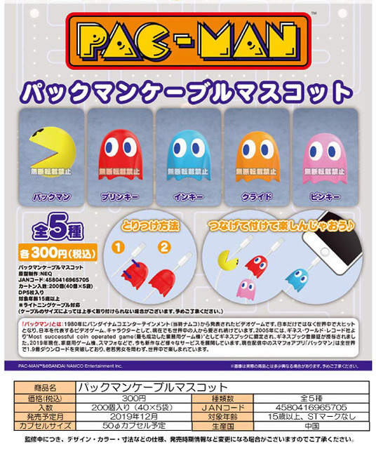 童年時候最喜歡玩的電玩遊戲《小精靈》(PAC-MAN,由現在的 NAMCO 岩谷徹所製作的遊戲),要被實體化做成可愛的傳輸線專用小吊飾了!由日本知名玩具廠商 GOODSMILE 所推出,以小精靈和遊戲裡的鬼魂為造型的轉蛋玩具「小精靈傳輸線磚用造型吊飾」將於 2019 年 12 月發售。